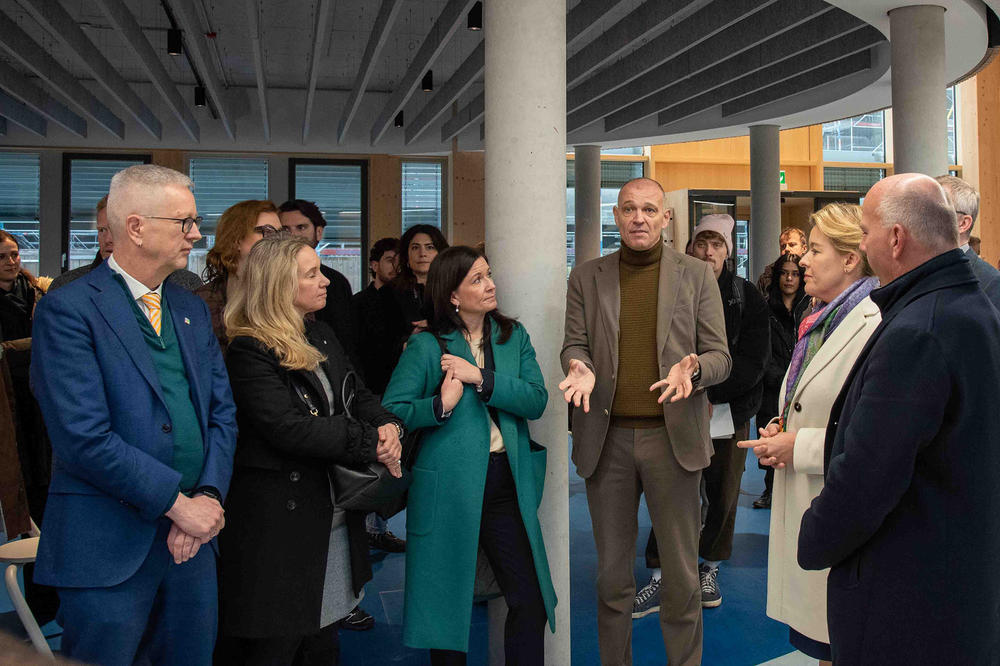 Hochrangiger Besuch in der Fabeckstraße: Auf ihrer Tour durch den Bezirk Steglitz-Zehlendorf besichtigten der Regierende Bürgermeister von Berlin, Kai Wegner, und die Mitglieder des Berliner Senats die Startup-Villa der Freien Universität sowie den Zukunftsort Berlin-Südwest mit FUHUB und FUBIC. Begleitet wurden sie von Maren Schellenberg, der Bezirksbürgermeisterin von Steglitz-Zehlendorf.