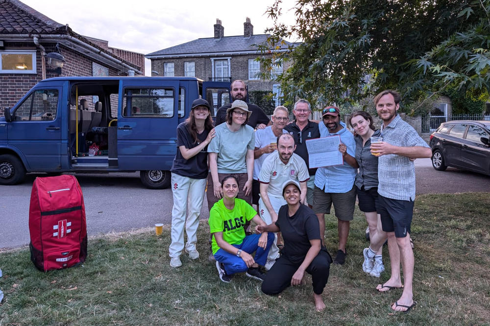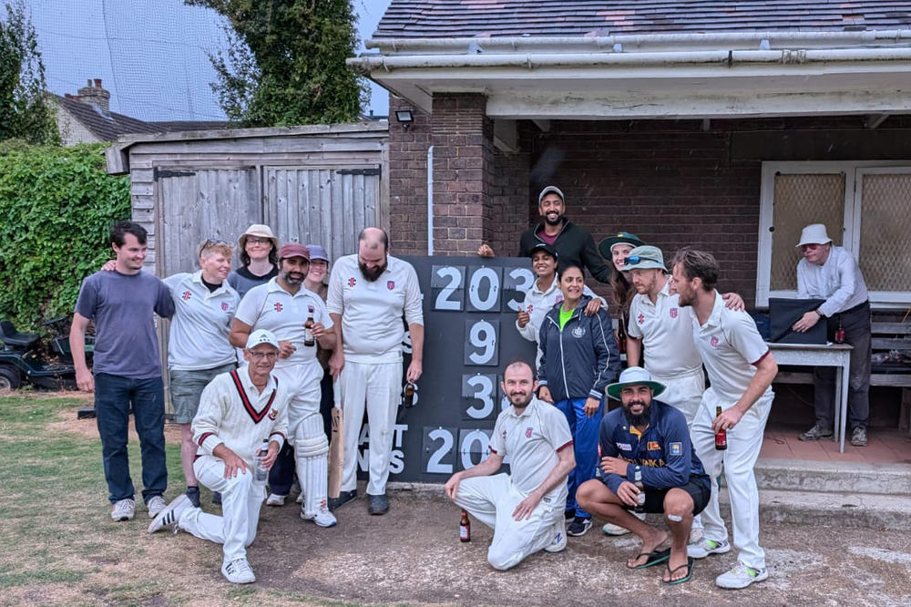 Sadly, we did pick up some injuries over the course of the two games and our next game, a short 20-over evening match away at the picturesque ground of Grantchester CC, next door to an English village tea garden, ended in heavy defeat. However, we are determined to see this in a positive light: it was a good opportunity to see how much more we must progress to be able to beat them next time around.